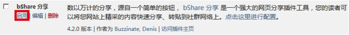 登录Wordpress管理中心,点击“插件”,可以看到新增的插件“bShare分享”,直接点击“启用”。