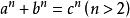 它断言当整数n >2时,关于x, y, z的方程 x^n + y^n = z^n 没有正整数解。