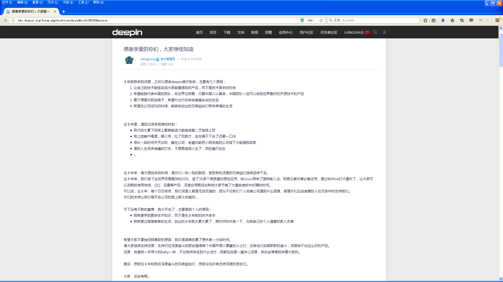 最后,感谢这8年和我在深度奋斗的兄弟姐妹们,感谢论坛所有支持深度的朋友们。