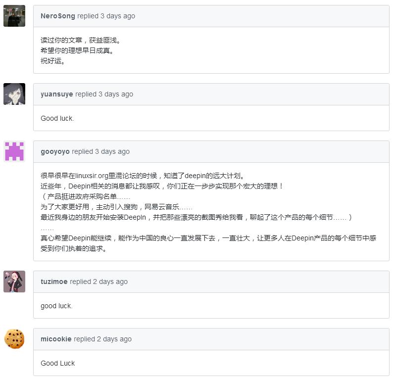 请大家继续支持深度,支持仍在深度奋斗的那些值得每个中国开源人尊重的斗士们,没有他们后面默默的奋斗,深度做不出这么好的产品。